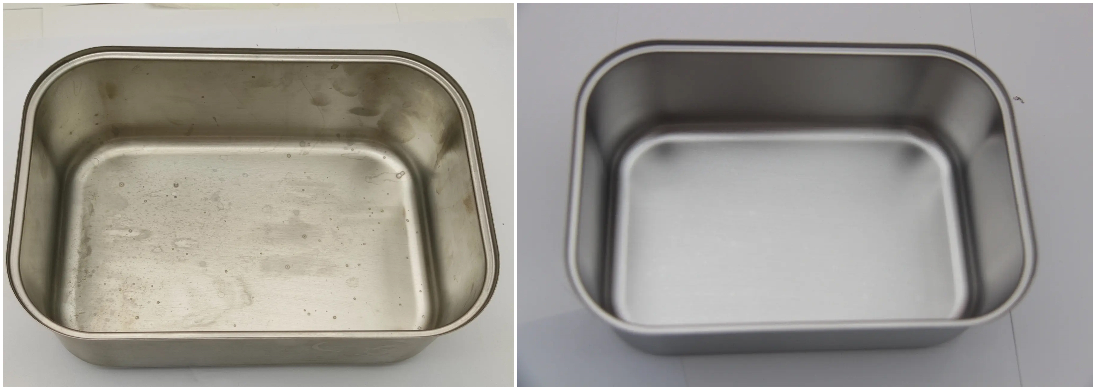 該客戶向凱盟公司求助,希望找到一種有效提升不銹鋼餐盒表面光亮度的方法。凱盟公司的技術團隊迅速響應,深入了解客戶的生產流程和需求后,推薦了自主研發的不銹鋼電解拋光液處理工藝。