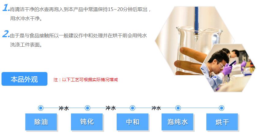 答 環保(bao)不銹鋼鈍化液不含鉻等重(zhong)金屬,配方環保(bao),鈍化后的(de)工件(jian)完全符合FDA檢測