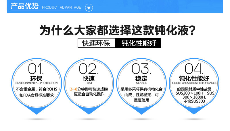 4. 本品廣泛適用于國標1Cr13、2Cr13、3Cr13、SUS416、430、SUS420F等材料的鈍化處理,通用性強
