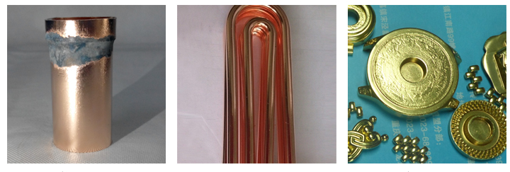 將清潔后的待處理銅件放入到本拋光液中,溫度最佳建議40~45度,保持20秒~2分種后取出,然后用水沖洗干凈即可。拋光的時間由銅件表面氧化的程度來決定。