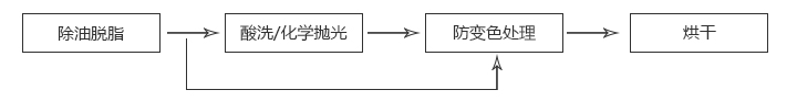1 防變色前的清洗或酸洗等工藝必須清洗干凈,必要時進行中和處理后再進行抗變色處理,以免污染本產品 ;