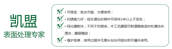 1: 為了確保防銹質量,如果待處理銅材表面有油或銅綠等氧化物,一定要將這些污垢徹底清除干凈后,方可進行鈍化. ;